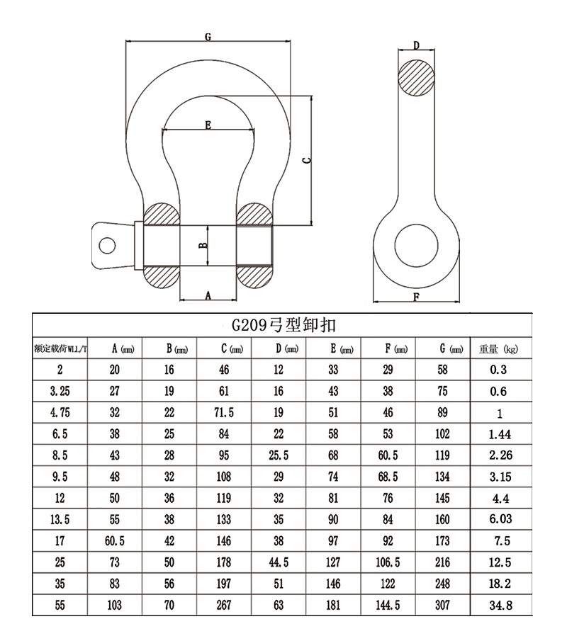 羊角安全鉤技術參數(shù): ITEM NO. WLL/T B.L/T A B C D 8-SL1002-06 1.12 4.48 8 29 34 20 95.5 8-SL1002-7/8 2 8 9 34 46 24 121 8-SL1002-10 3.15 12.6 11.5 44 52 29 146 8-SL1002-13 5.4 21.6 15.5 52 65.5 40.2 182 8-SL1002-16 8 32 18.5 60 82